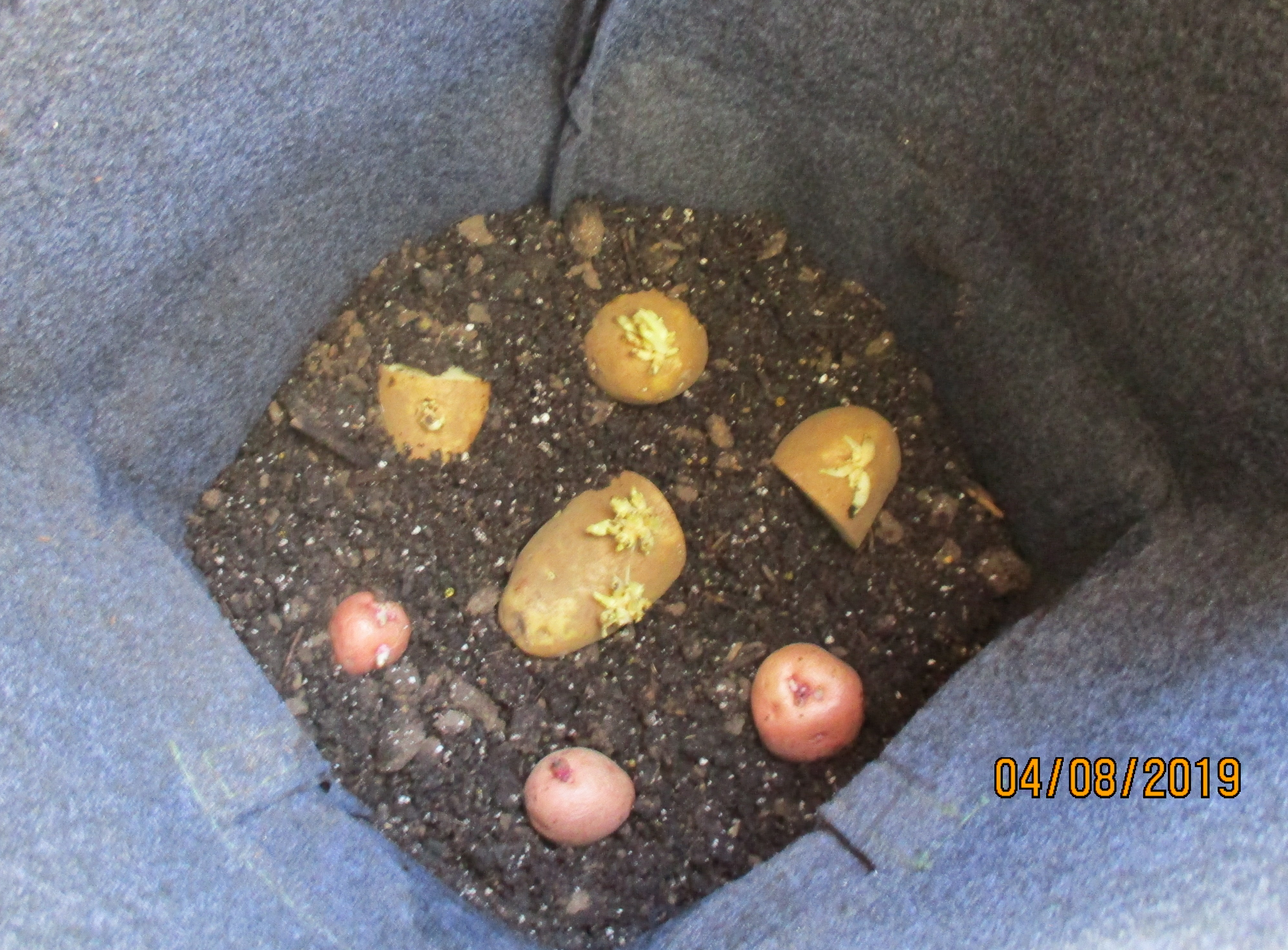 Seconds of careful digging with my spade revealed a small red potato. Eureka! On April 8, I had “seeded” the bag with three chunks of red potato and four of Idaho russets compared to six brown tubers in the first sack.
